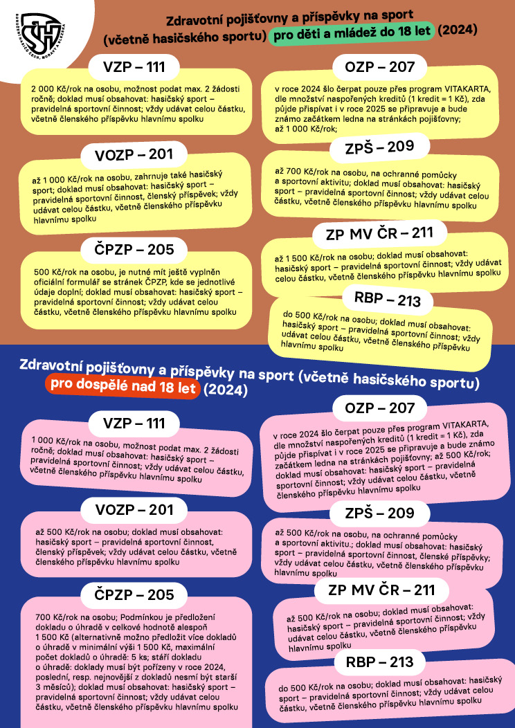 | 9.12.2024 | Zdravotní pojišťovny, příspěvek na sport VV SH ČMS projednal na svém jednání - přehled zdravotních pojišťoven, které v roce 2024 poskytovaly příspěvek na pravidelnou sportovní činnost včetně hasičského sportu. Ve většině případů lze příspěvek čerpat i na úhradu členského příspěvku člena SH ČMS – sportovce. Jakmile zdravotní pojišťovny zveřejní preventivní a další programy pro své pojištěnce na rok 2025, budeme Vás samozřejmě informovat. https://www.dh.cz/index.php/aktuality/2659-prispevky-pojistoven-na-sportovni-cinnost-pro-rok-2024 ![]() |
