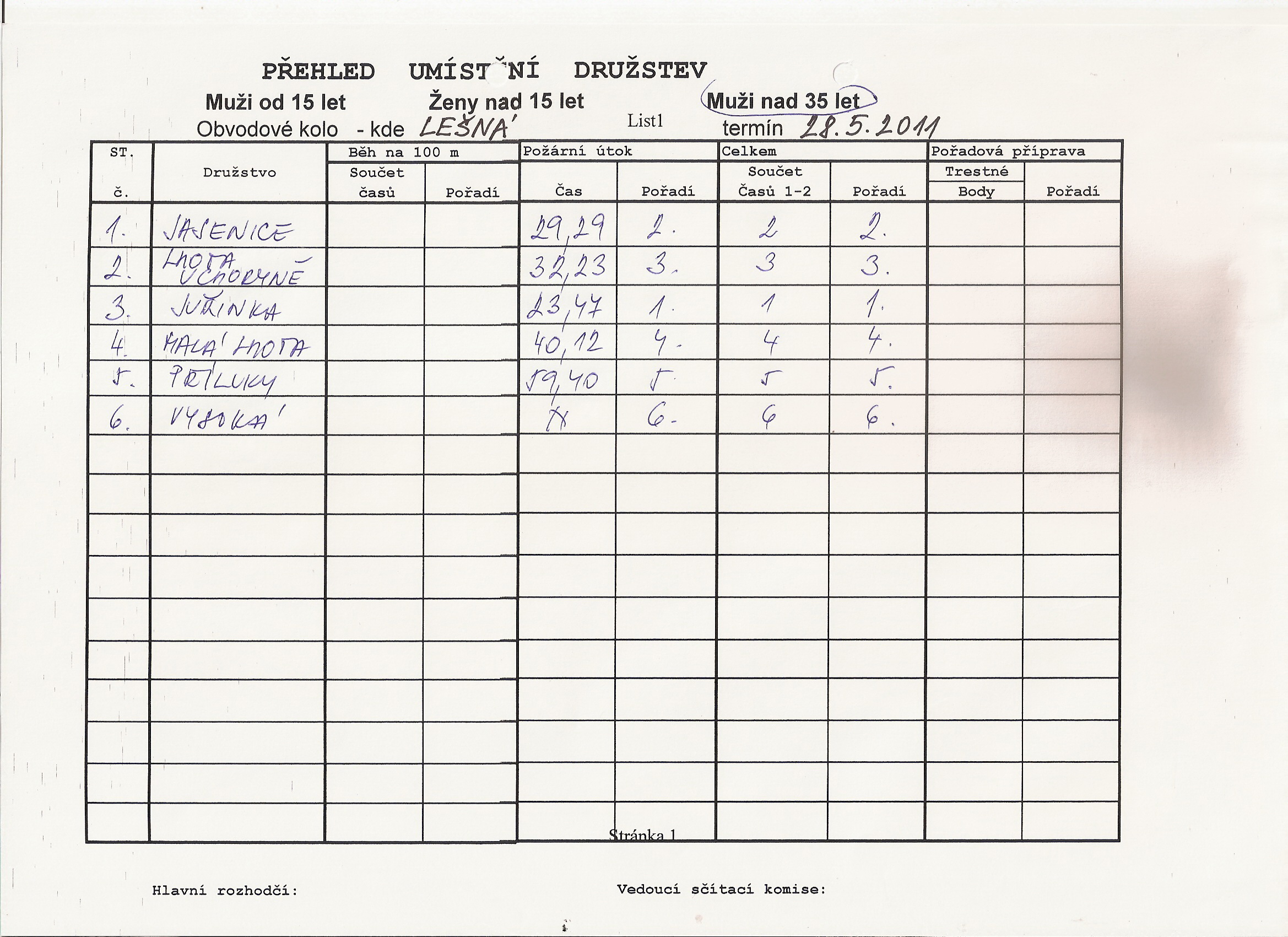 29.5.2011Výsledky Obv. kola PS Jarcová