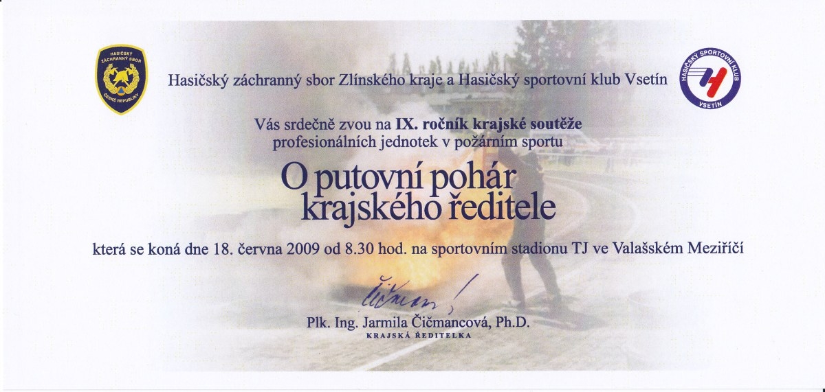 15.6.2009Pozvánka na IV. ročník krajské soutěže O putovní pohár krajského ředitele HZSZK