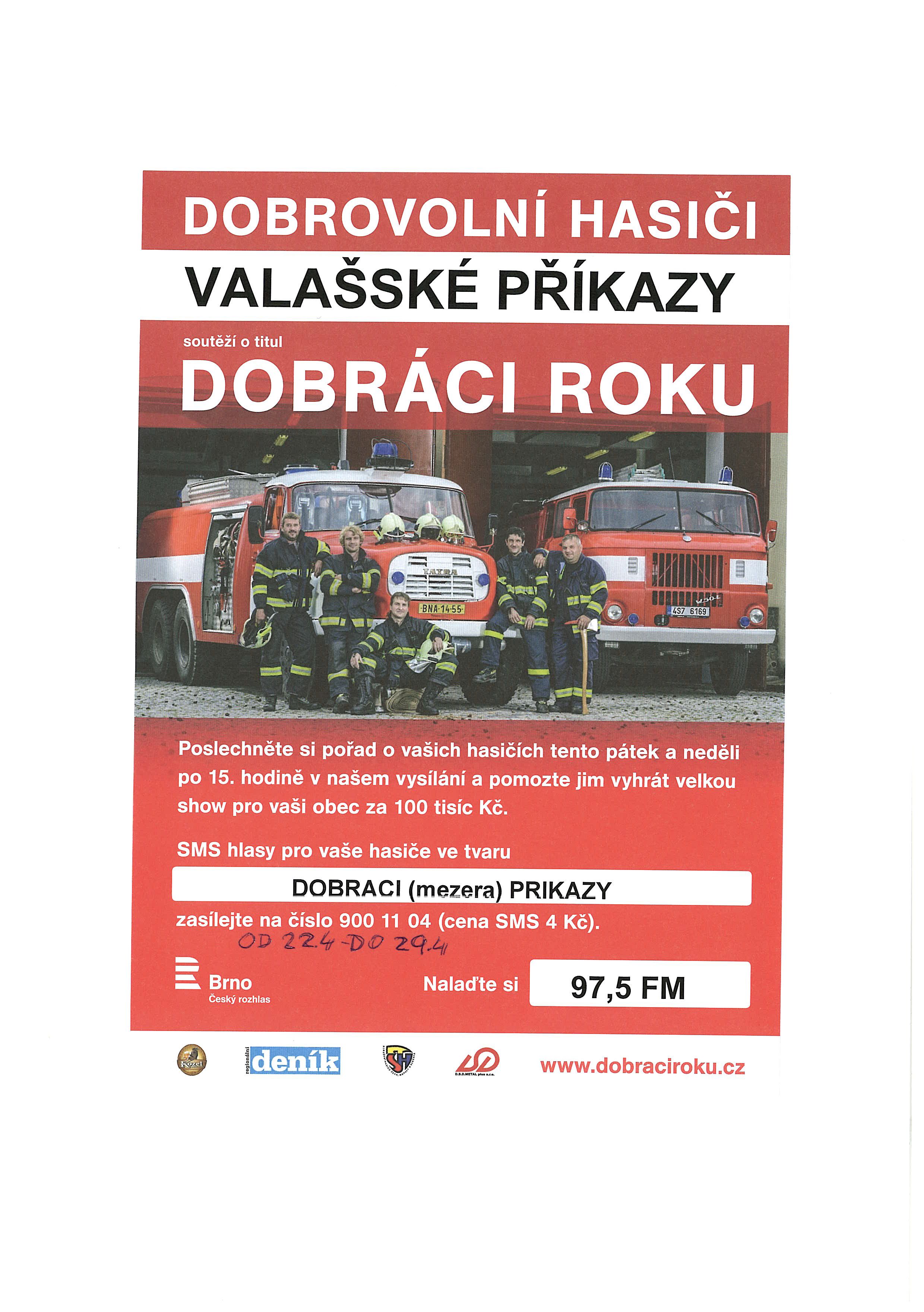 | 21.4.2016 | Dobráci roku SDH Valašské Příkazy prosí o podporu v soutěži. ![]() |