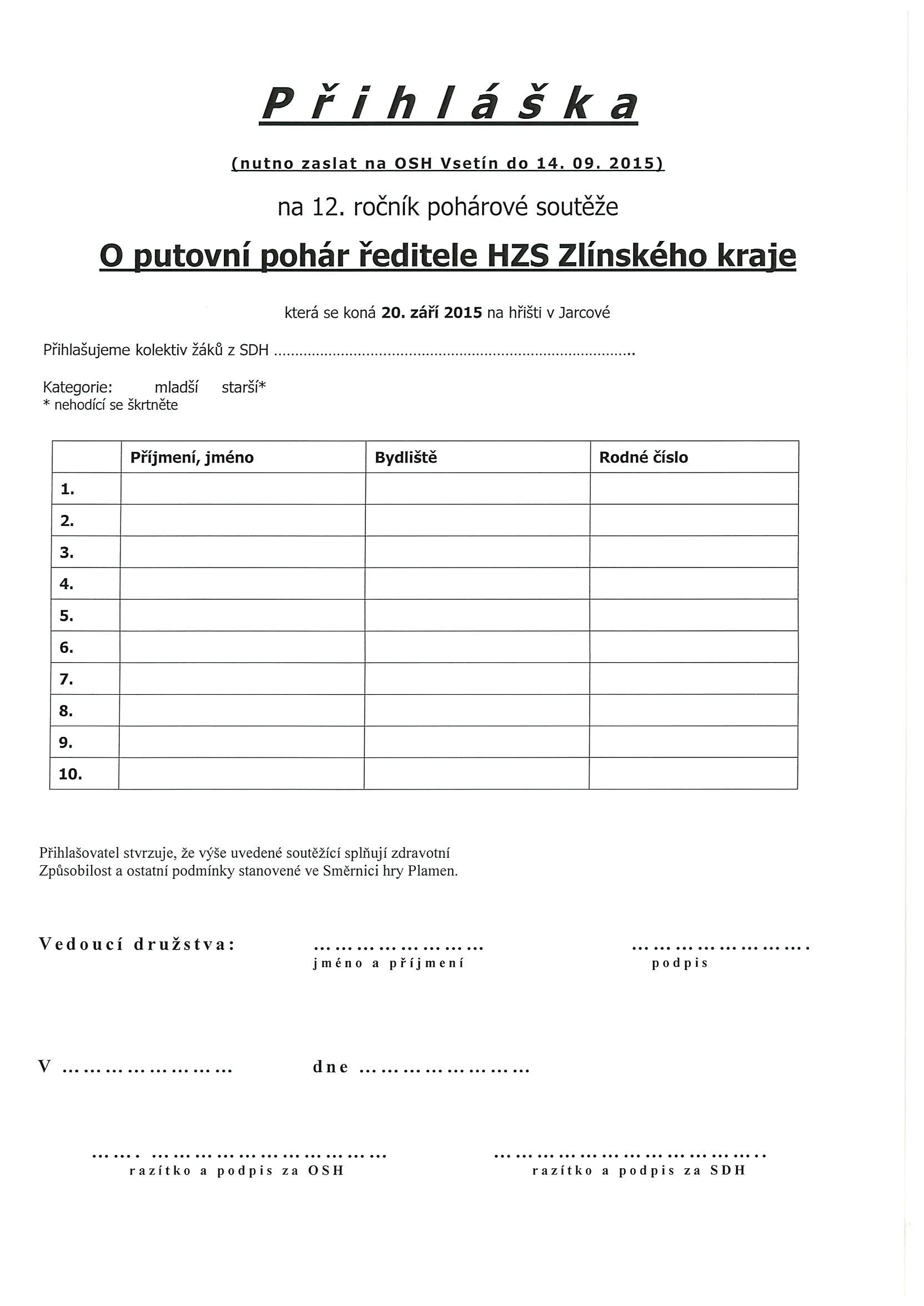 | 12.8.2015 | Soutěž MH "O putovní pohár ředitele HZS ZLK" |