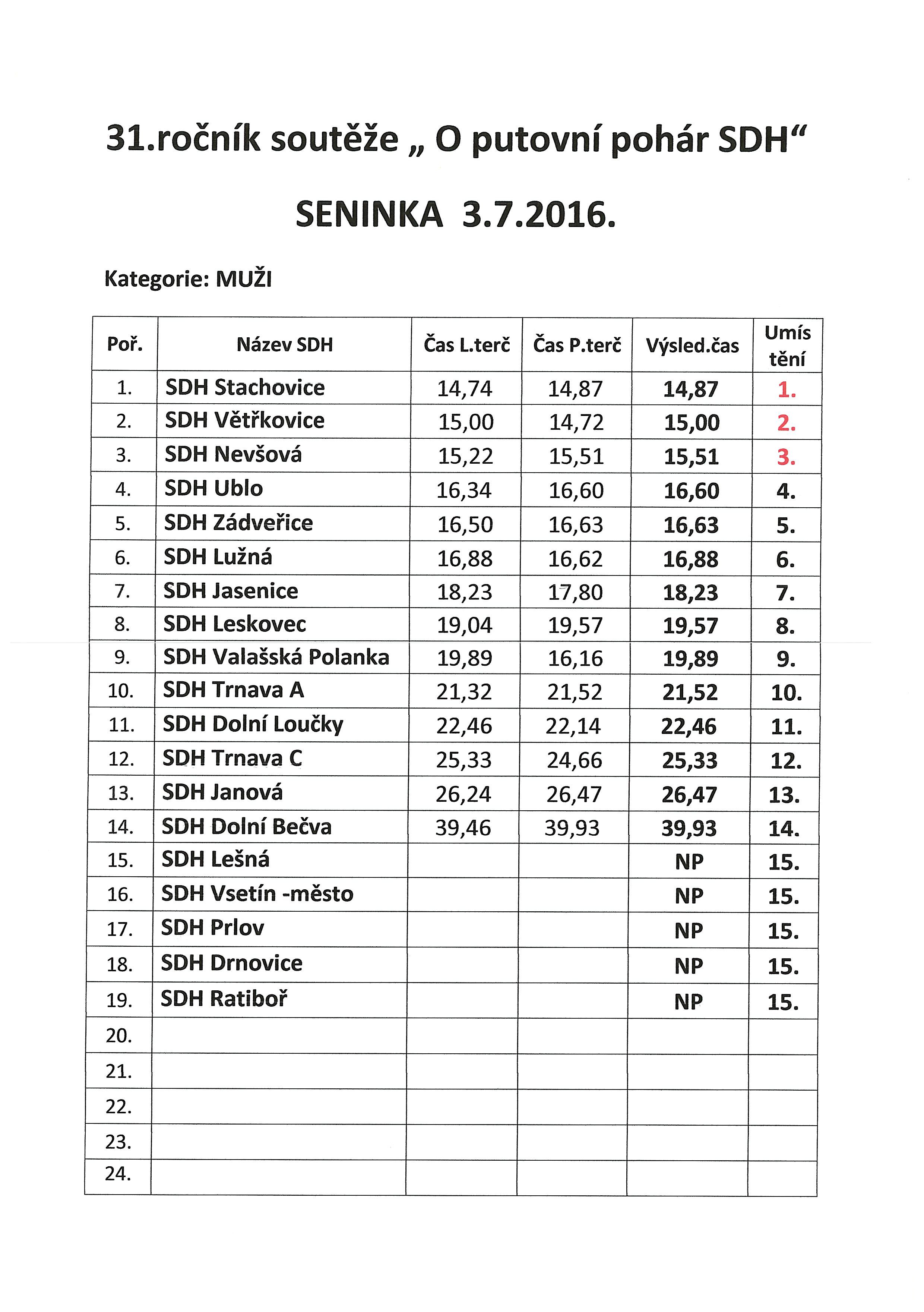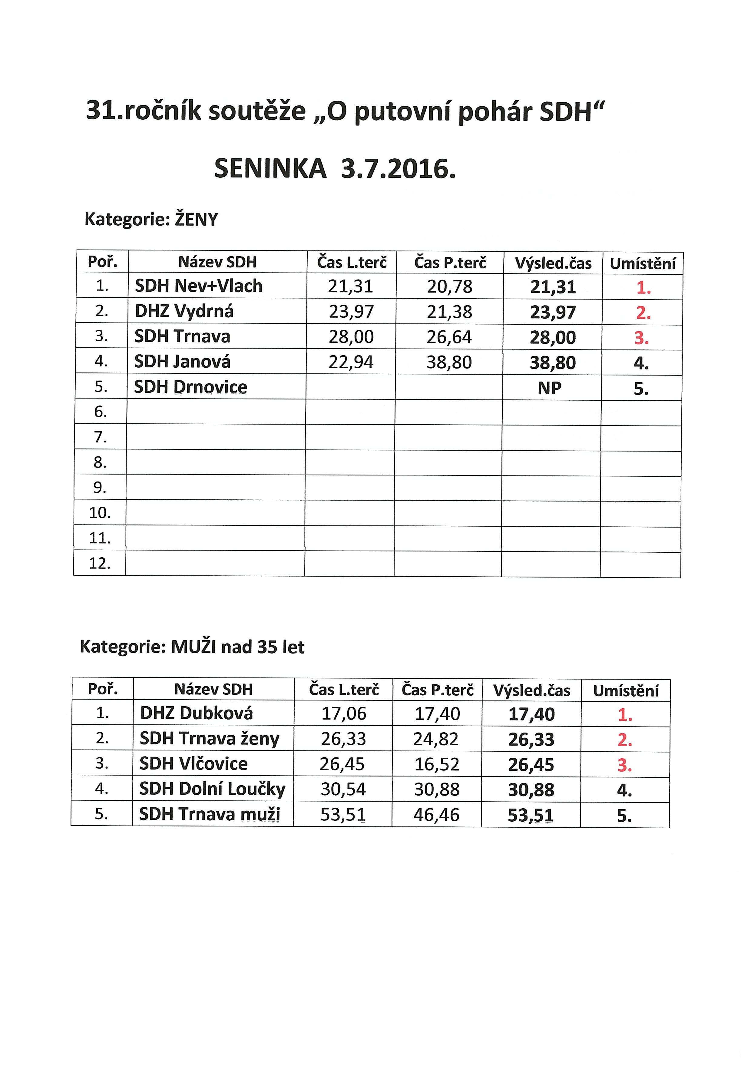 | 12.7.2016 | O putovní pohár SDH * - Seninka 3.7.2016 |