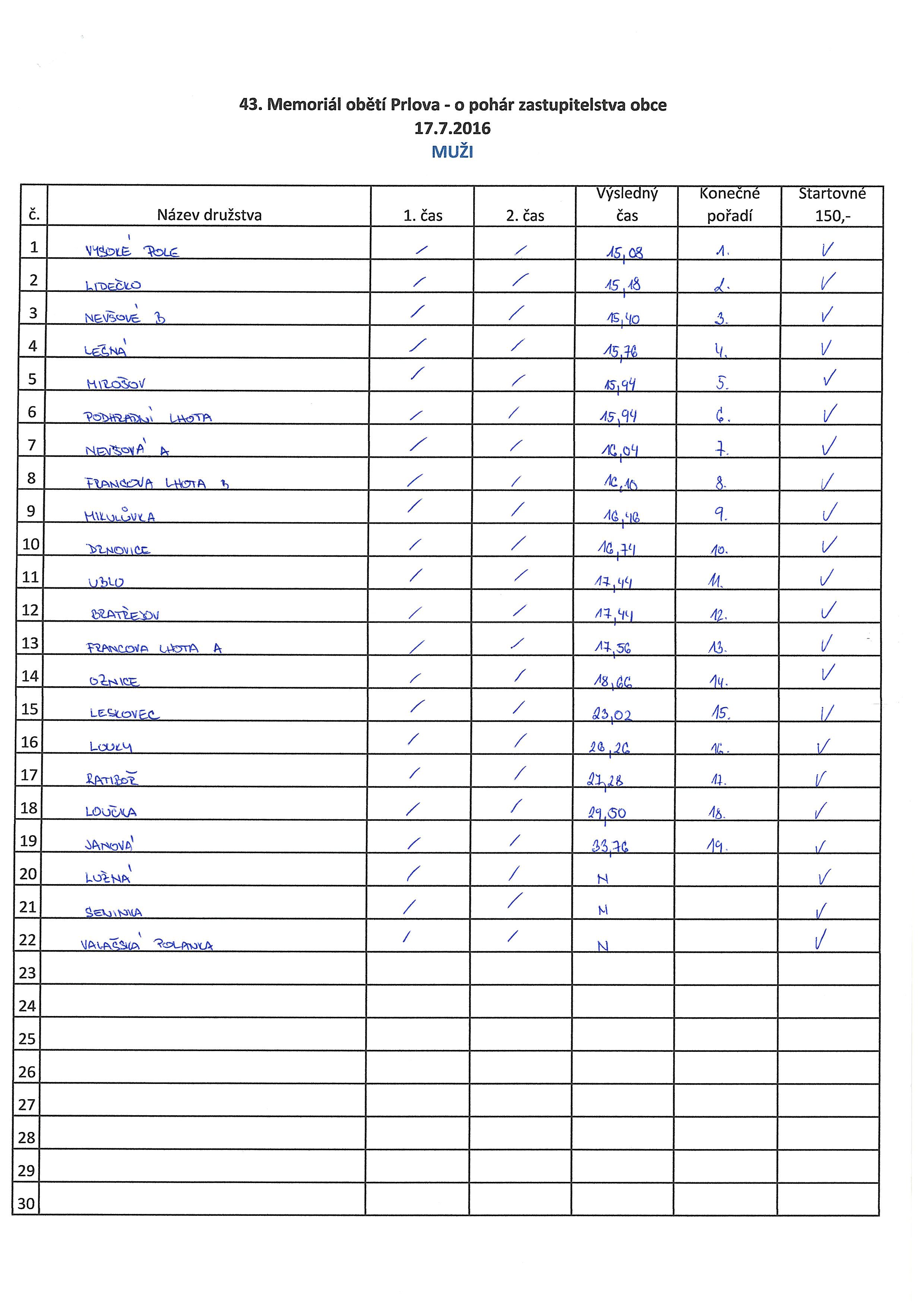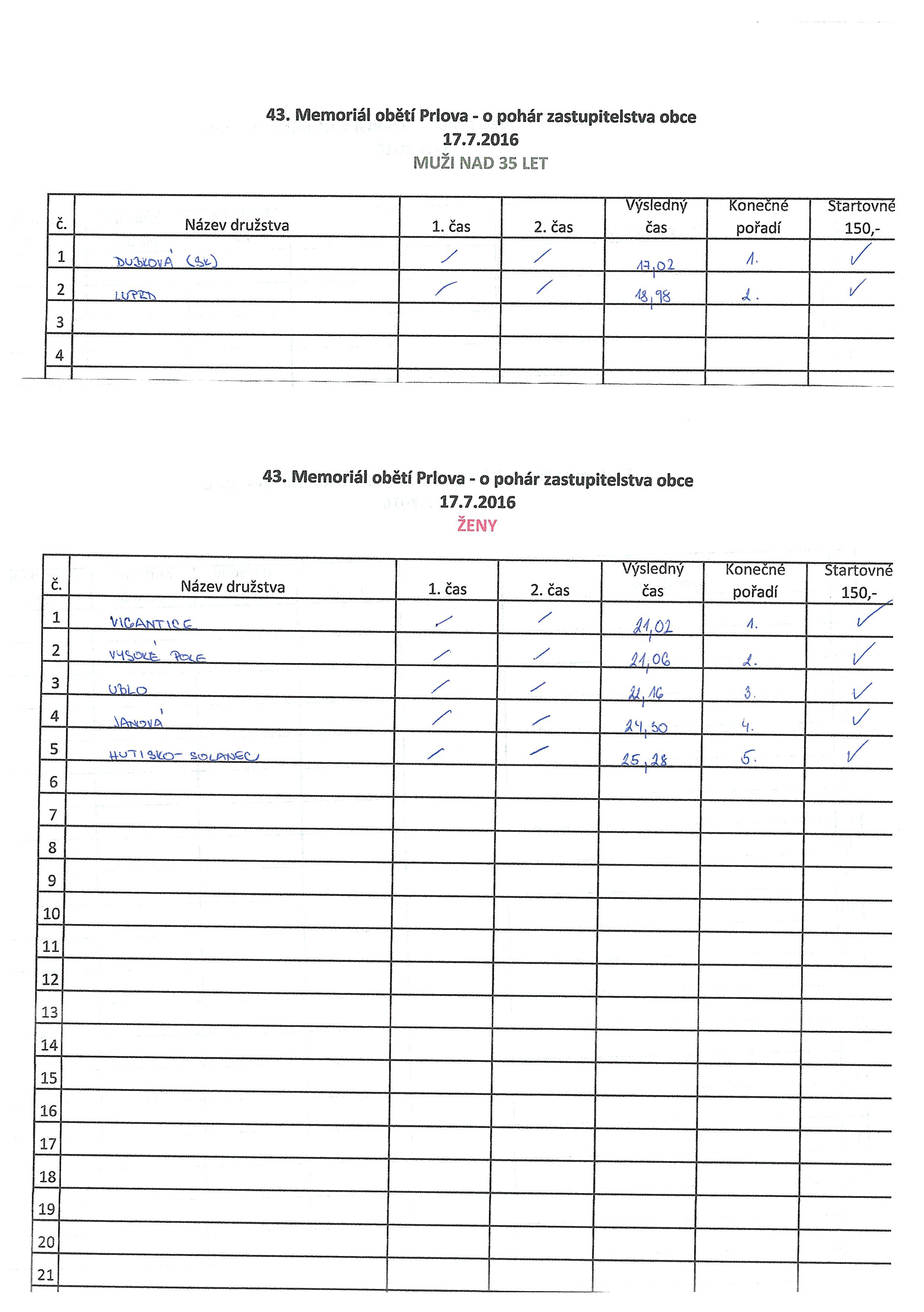 | 18.7.2016 | Výsledky soutěže Prlov 17.7.2016 |