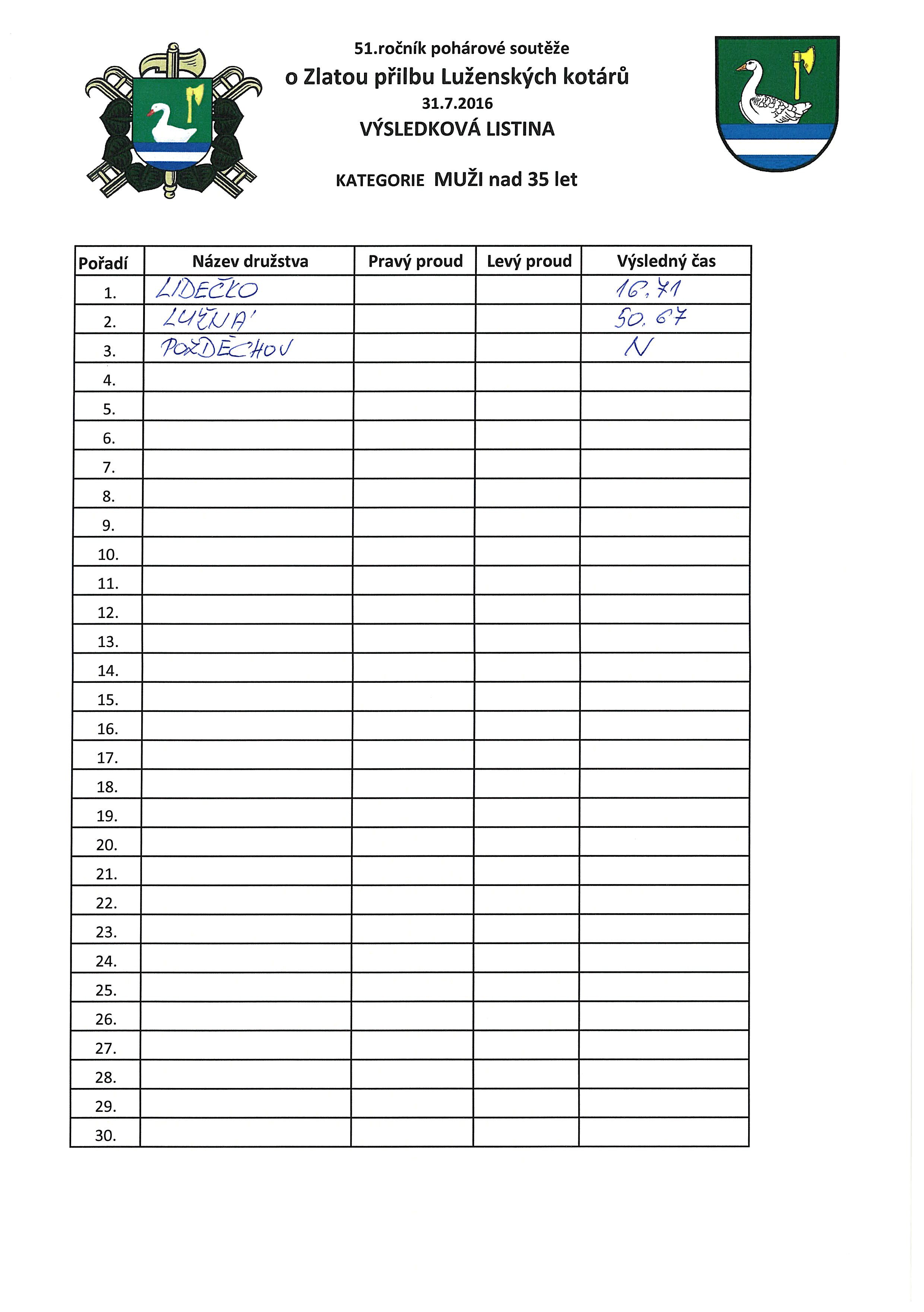 | 8.8.2016 | Výsledky soutěže Lužná 31.7.2016 |