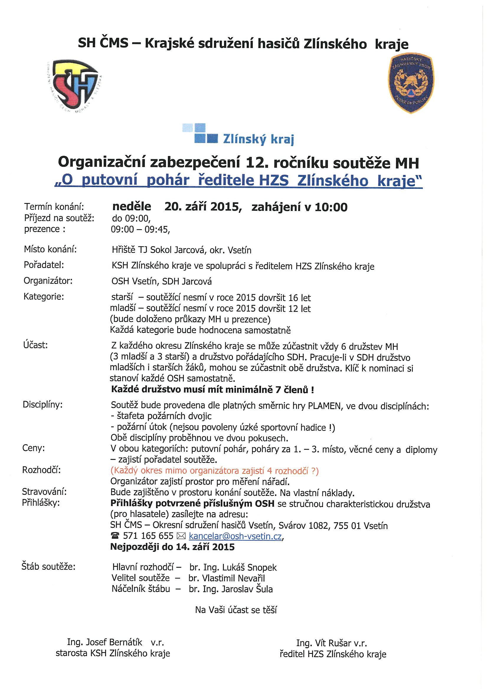| 12.8.2015 | Soutěž MH "O putovní pohár ředitele HZS ZLK" |