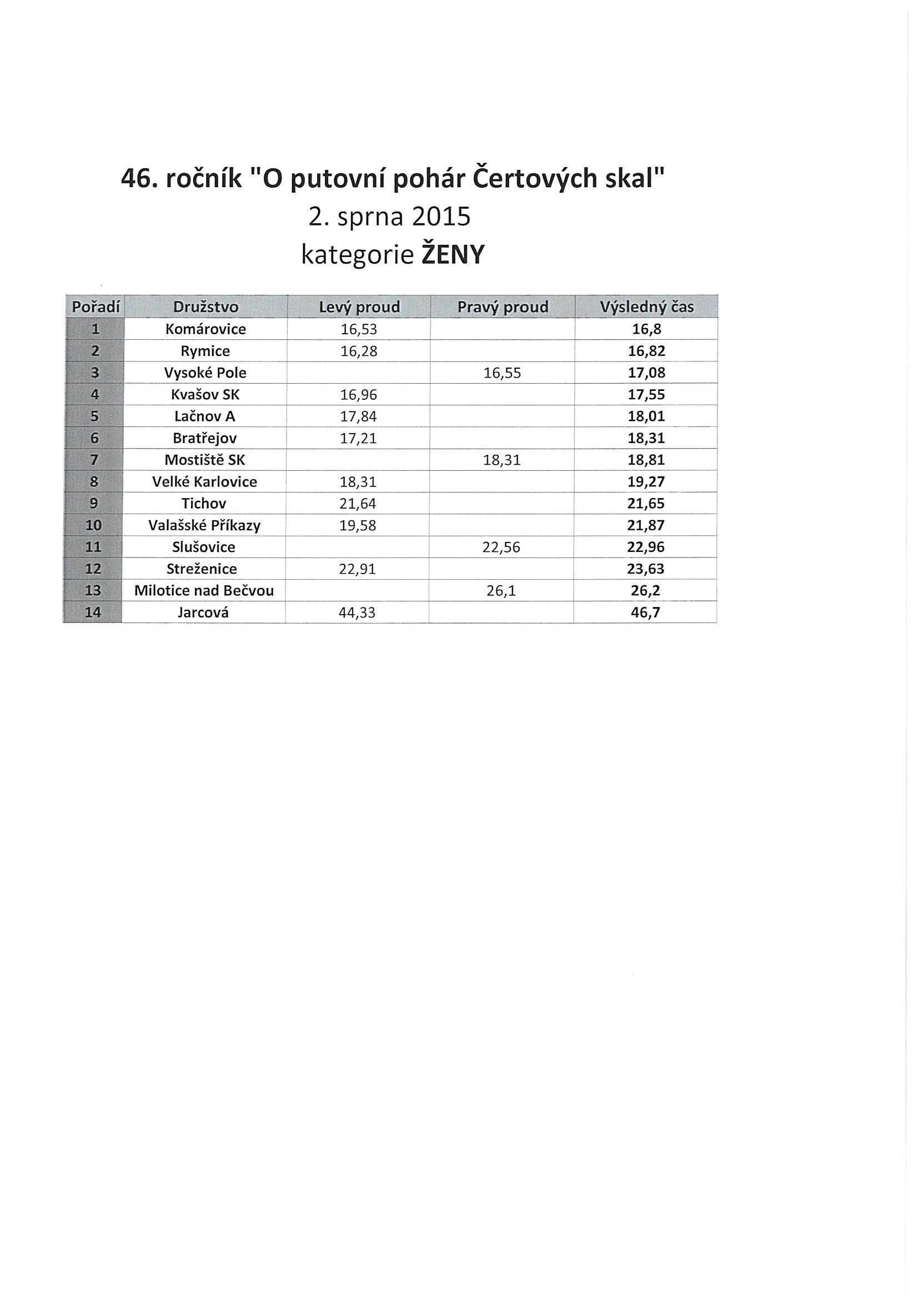 | 19.8.2015 | "O putovní pohár Čertových skal" - výsledky |