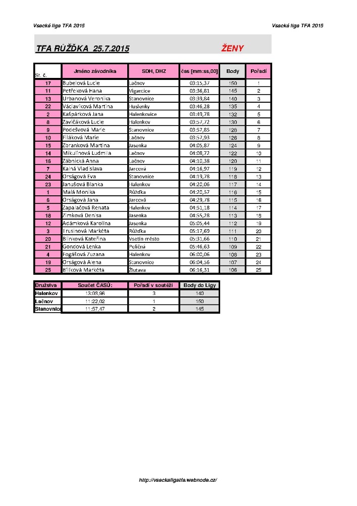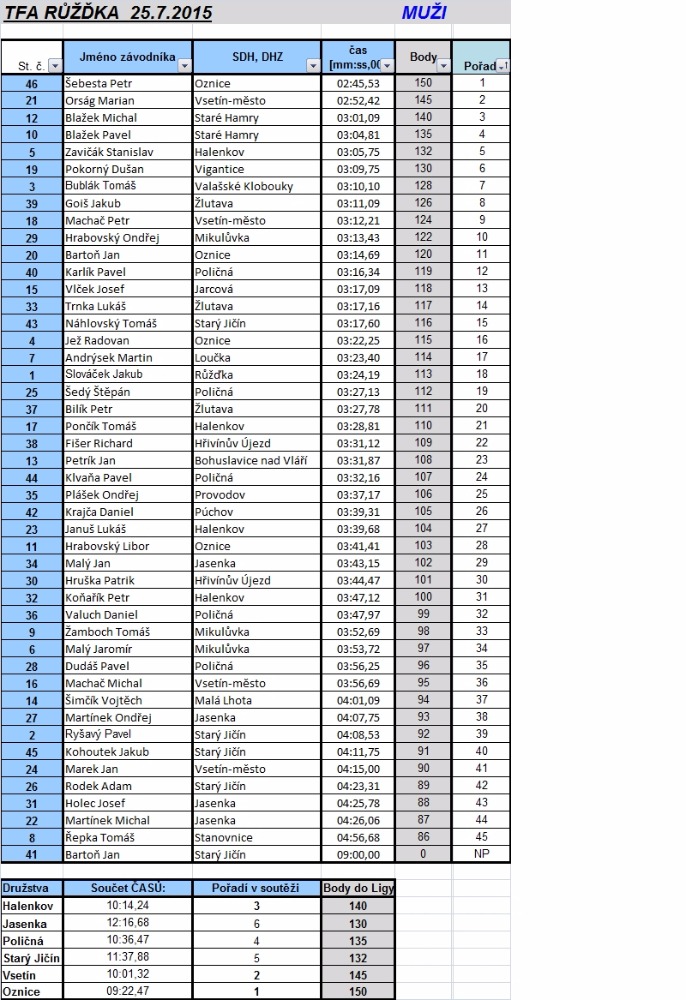 | 26.8.2015 | Výsledky soutěže TFA Halenkov a Růžďka |