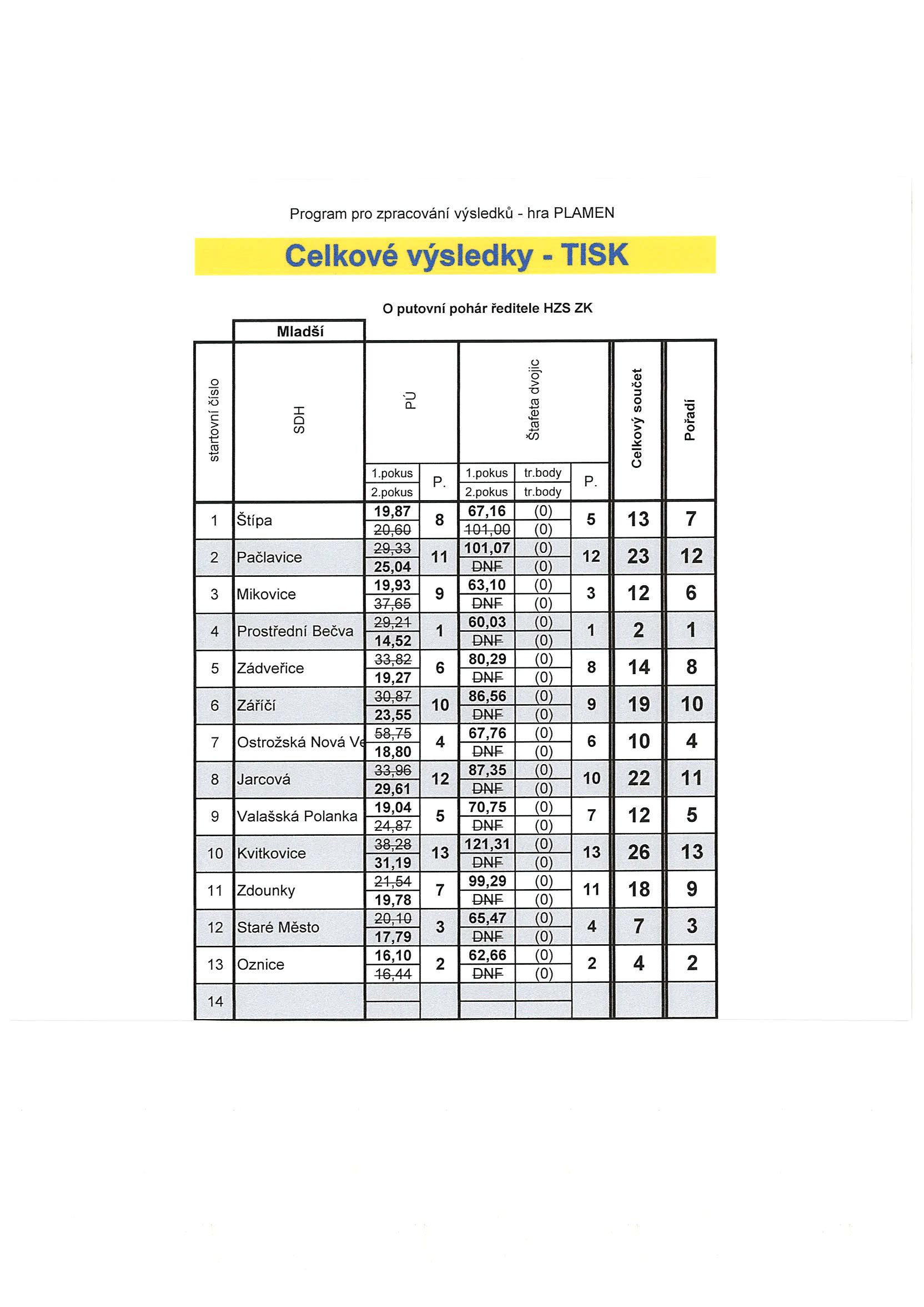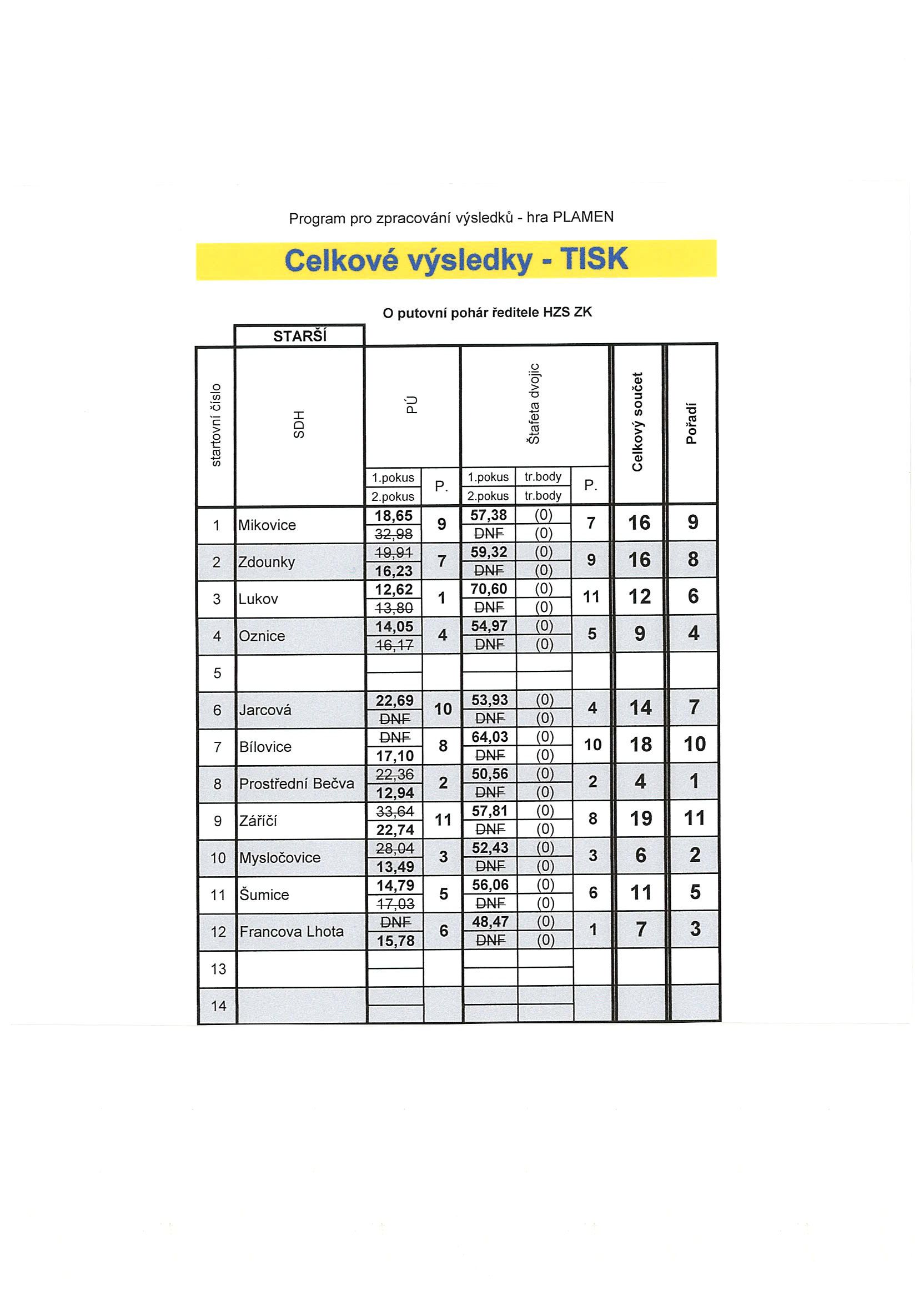 | 21.9.2015 | Výsledky soutěže "O putovní pohár ředitele HZS ZK" |