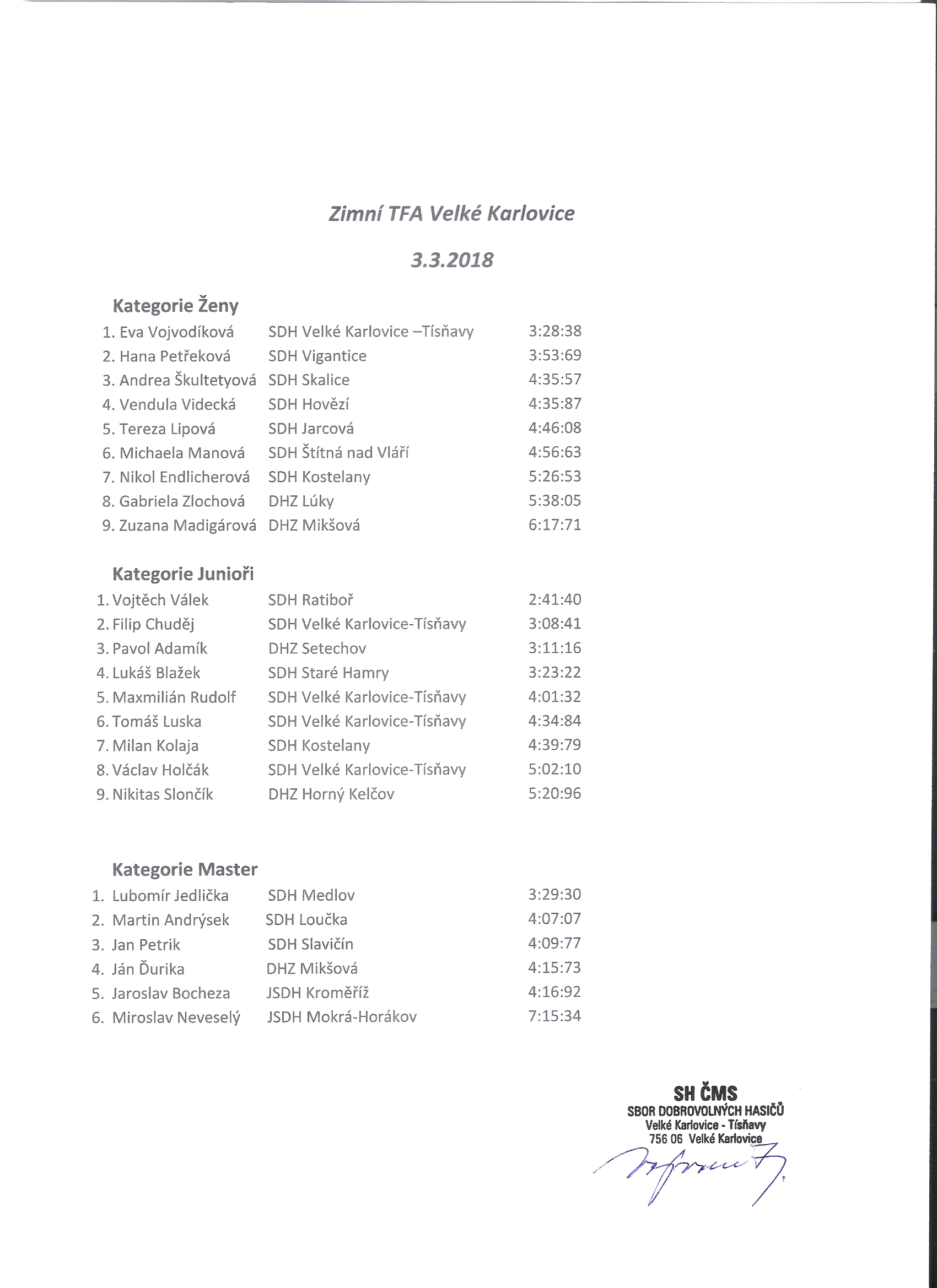 | 8.3.2018 | 3.3.2018, Velké Karlovice Tisňavy - Ski areál RAZULA, Zimní TFA