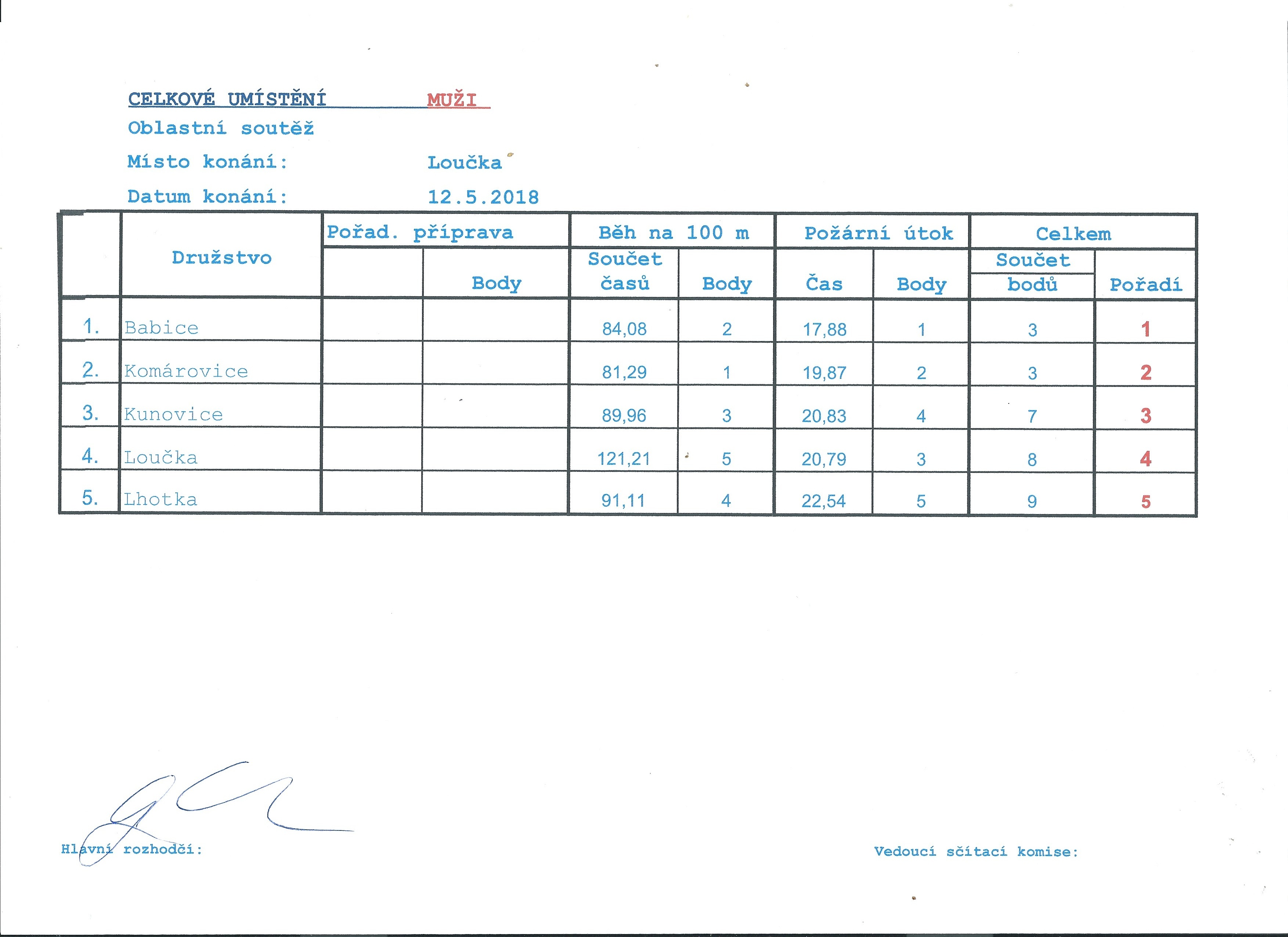 | 14.5.2018 | 12.5.2018, Loučka - Hřiště , Obvodová soutěž - obvod č. 3