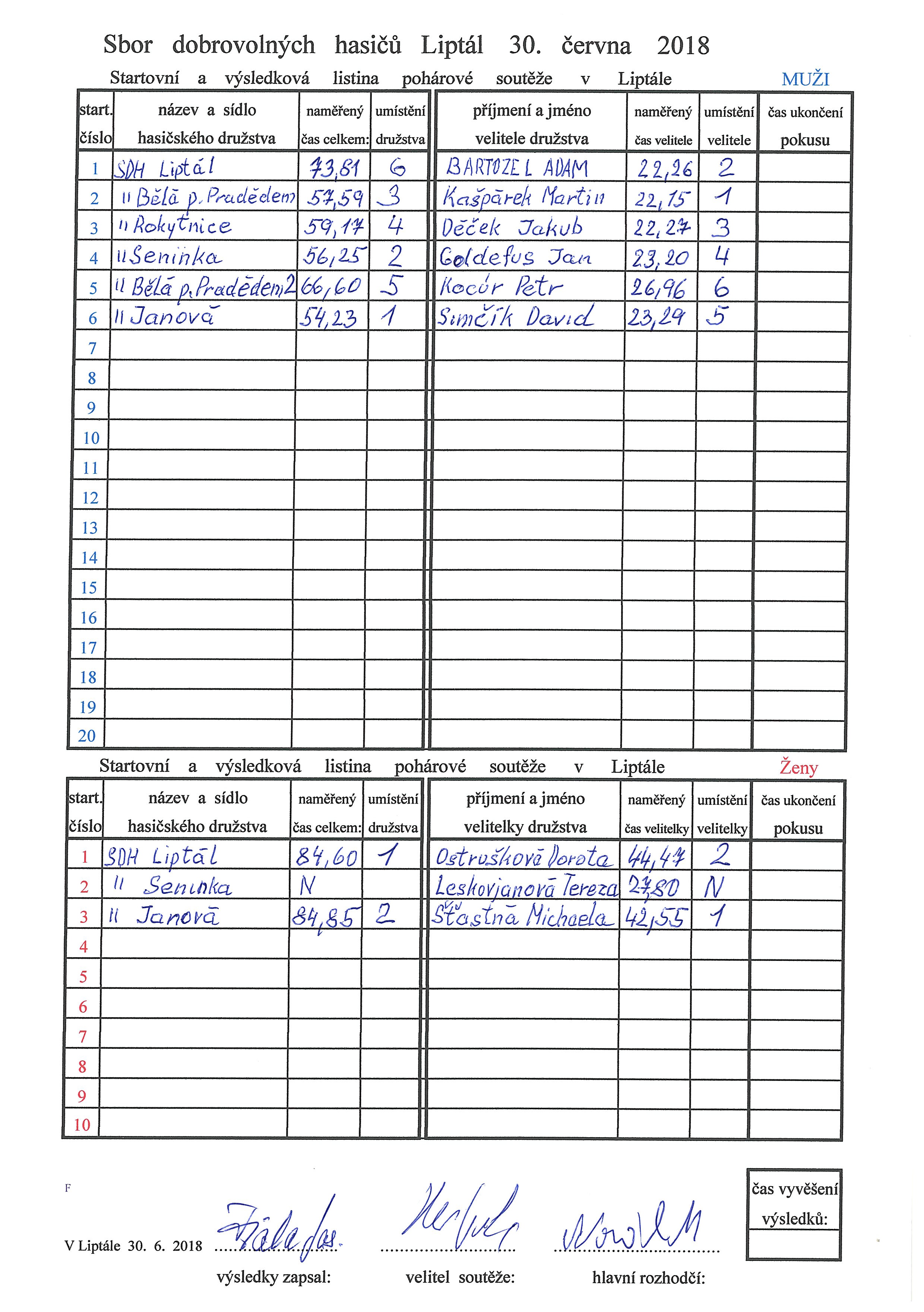 | 9.7.2018 | 30.6.2018, Liptál - Hřiště , Pohárová soutěž