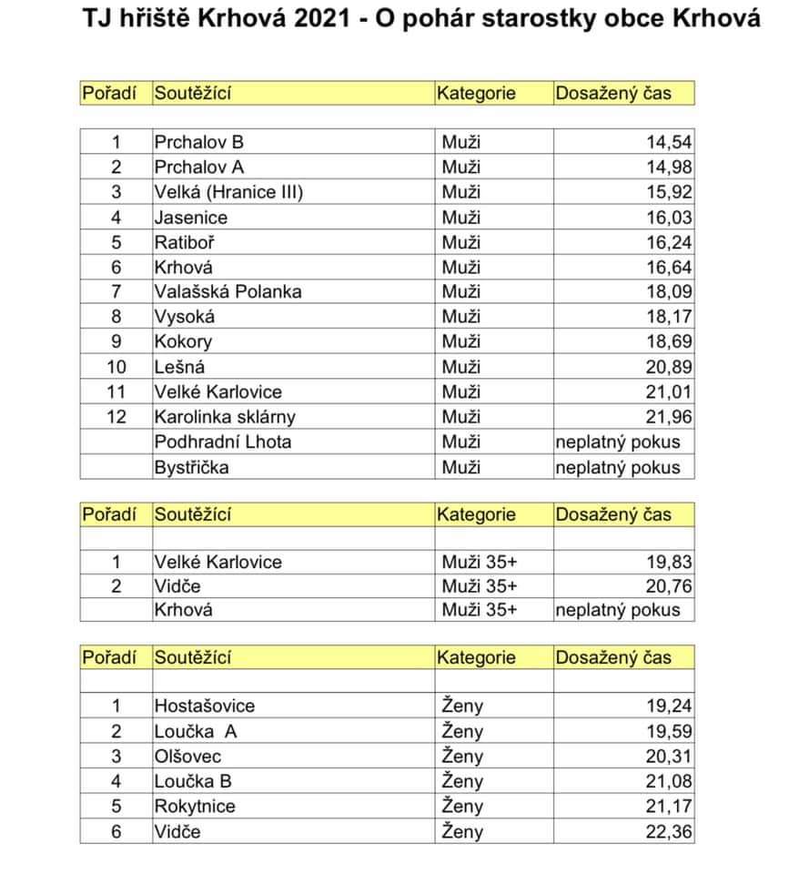 | 15.7.2021 | 4.7.2021, Velké Karlovice Tisňavy - Hřiště, Pohárová soutěž