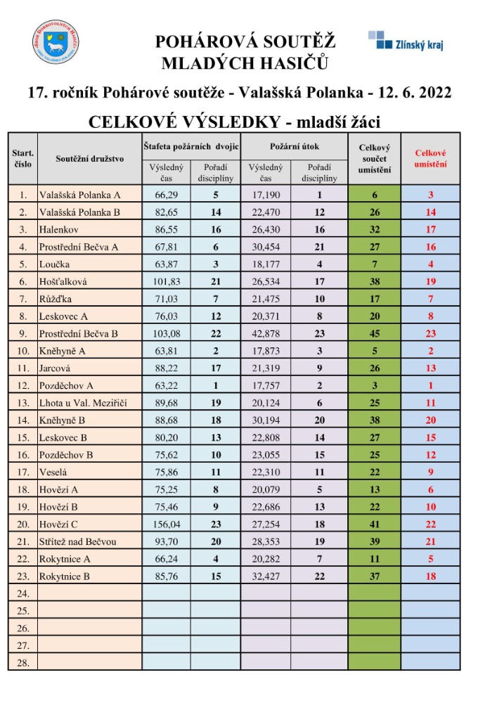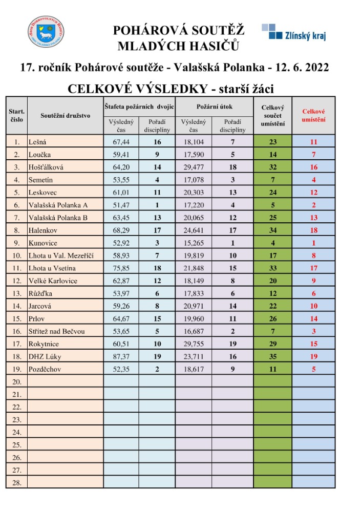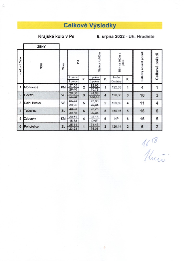 | 19.7.2022 | 10.7.2022, Velké Karlovice Tisňavy - U hasičské zbrojnice , Pohárová soutěž