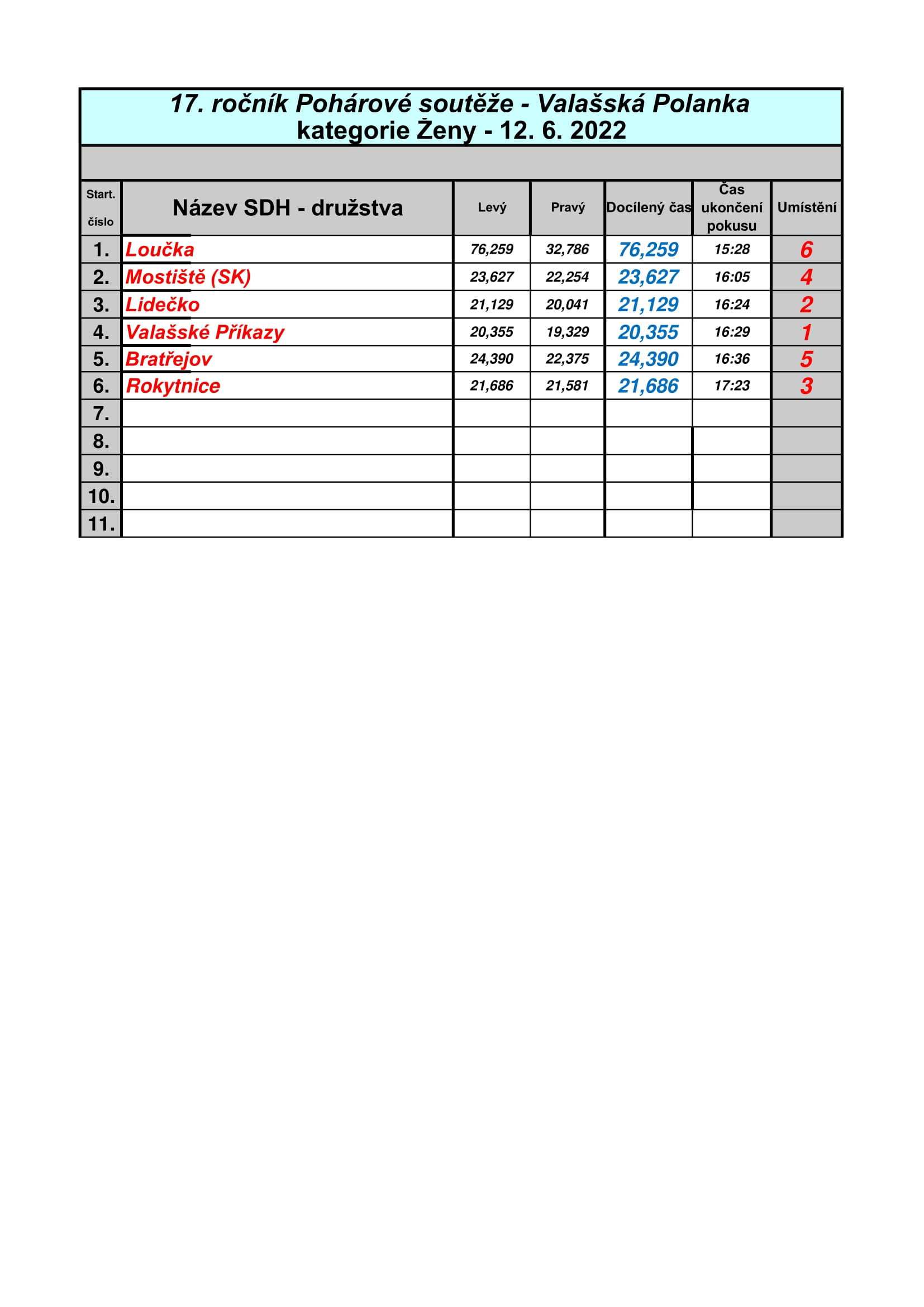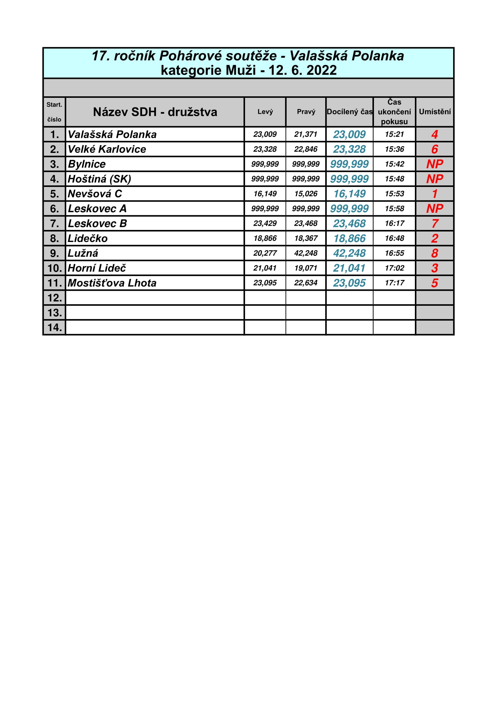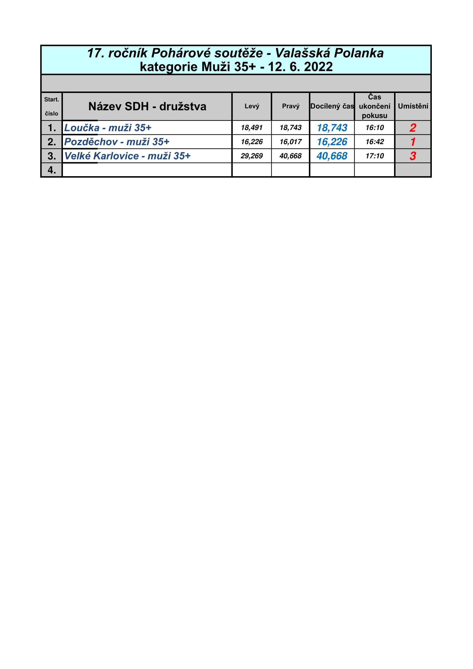 | 22.6.2022 | 12.6.2022, Valašská Polanka - Hřiště, Pohárová soutěž